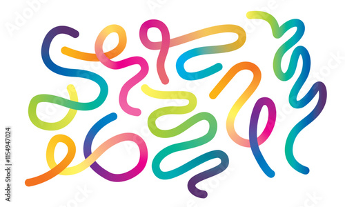Abstract Gradient Lines Set. Wavy Color Shape Vector Graphic Design. Dynamic Geometric Pattern. Background with Color Waves. Illustration of Colorful Squiggle Rainbow Ribbons