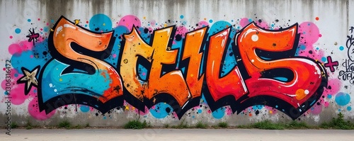 Abstract graffiti tags and symbols on rundown concrete wall, urban, symbols, concrete