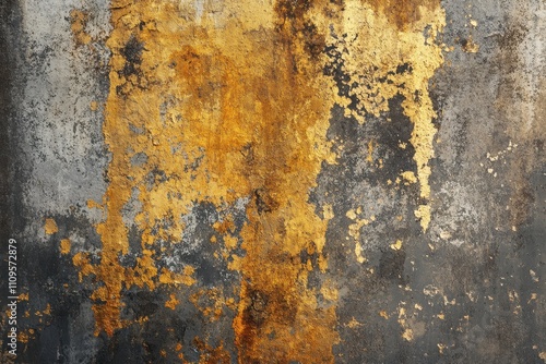 Abstract Grunge Wall Background in Gold and Gray Tones, Featuring Distressed Weathered Grunge Metallic Textures