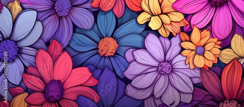Abstract hand drawn flowers in various colors forming a seamless pattern background