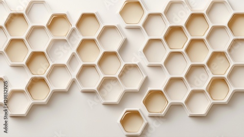 Abstract hexagonal pattern with beige and white tones creating a modern geometric background design.