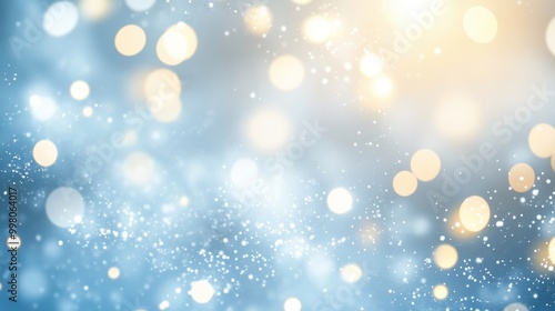 Abstract holiday background in light blue, featuring soft glowing lights and subtle sparkles, ideal for a calm and festive feel
