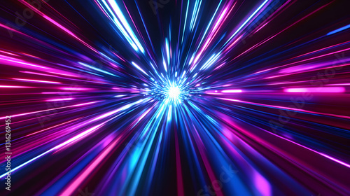 Abstract image featuring a dynamic explosion of neon lights and vibrant color streams