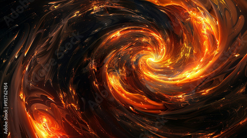 Abstract image of a swirling vortex of glowing orange and black colors, with ghostly faces emerging from within
