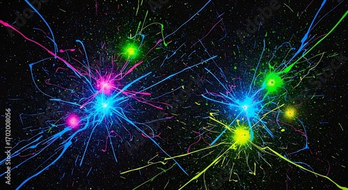 Abstract image of vibrant, colorful bursts of light and energy against a black background