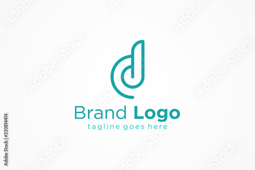 Abstract Initial Letter D Logo. Blue Rounded Line isolated on White Background. Flat Vector Logo Design Template Element.