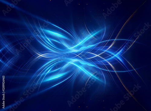 Abstract intertwining blue light trails create a dynamic futuristic design against a dark backdrop. Glowing streaks radiate and flow, forming a visually captivating pattern.