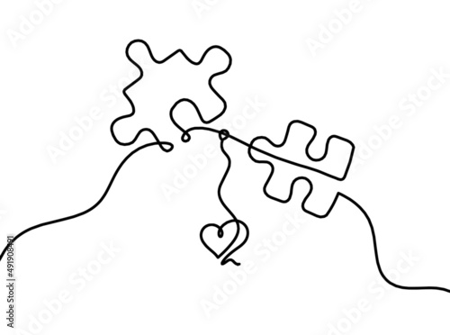 Abstract jigsaw puzzle with heart as line drawing on white background. Vector