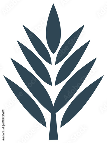 Abstract leaf design in dark blue, graphic illustration isolated on white.