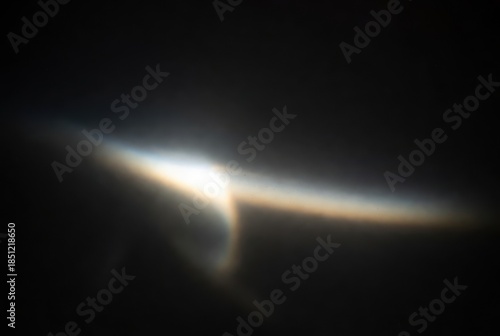 Abstract light streak and lens flare against a dark space creating an ethereal glow effect