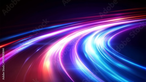 Abstract light trails curve, vibrant colors, dynamic motion, speed, energy, technology concept.