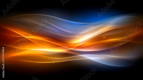Abstract light trails in gold and white against a dark blue background, with ample space for text.
