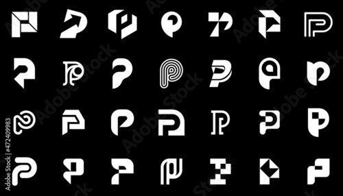 Abstract logos collection with letter P. Geometric abstract logos. Icon design