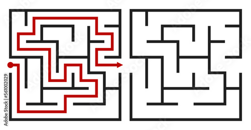 Abstract maze. Find right way. Isolated simple square maze black line on white background. Vector illustration.