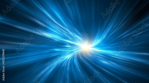 Abstract modern blue background science, futuristic, energy technology concept. Digital image of light rays, stripes lines with blue light, speed and motion blur over dark blue background illustration