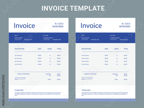 Abstract modern colorful business invoice template. color variation creative invoice Template Paper Sheet Include Accounting, Price, Tax, and Quantity. With color variation Vector illustration of Fina