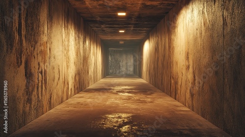 Abstract Modern Concrete Hallway with Dim Ceiling Lights