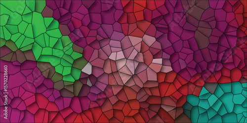 Abstract mosaic artwork featuring a colorful arrangement of irregular geometric shapes and gradients. a vibrant design for backgrounds and creative projects.