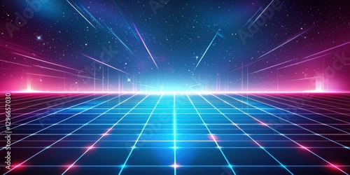 Abstract neon grid background with glowing 3D perspective, high-tech digital textures, and immersive cyber aesthetics.