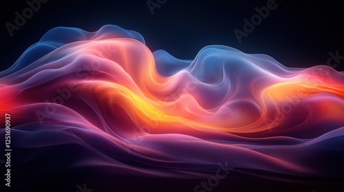 Abstract Neon Wave of Colorful Glowing Lines and Shapes on Dark Background