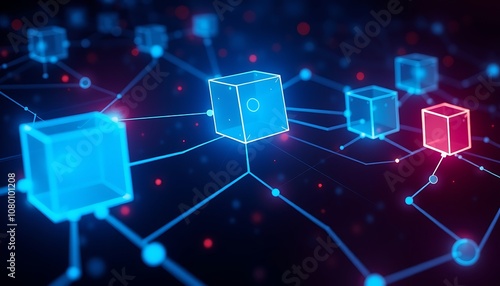 Abstract Network with Glowing Cubes,