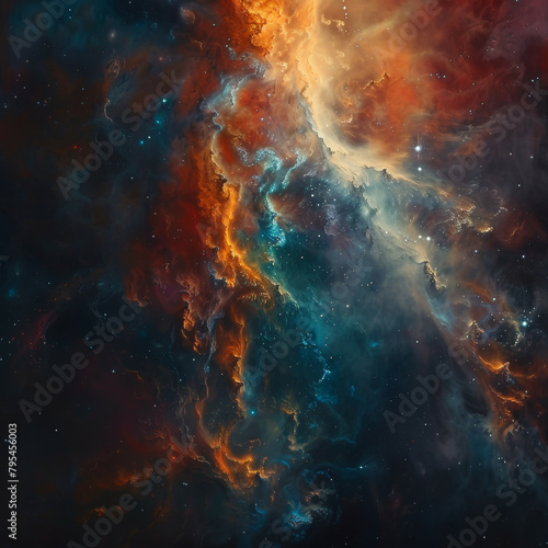 Abstract Orange-Blue Space Nebula - Cosmic Fusion
