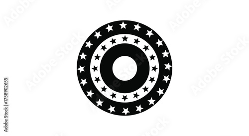 Abstract oval shape with concentric circles and star pattern in a bold black silhouette