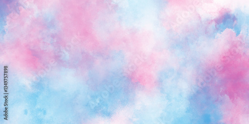 abstract pastel blue and white pink watercolor background, cand acrylic rainbow, Blue sky and pink pastel watercolor painted on paper, purple shades and blue watercolor paper textured illustration.