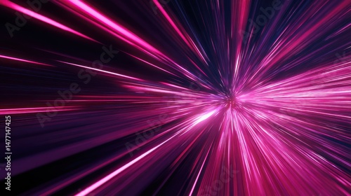 Abstract pink and purple light streaks converging towards a central point.