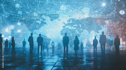 abstract professional business team people innovation connection of line from nail node to node on map background , networking concept