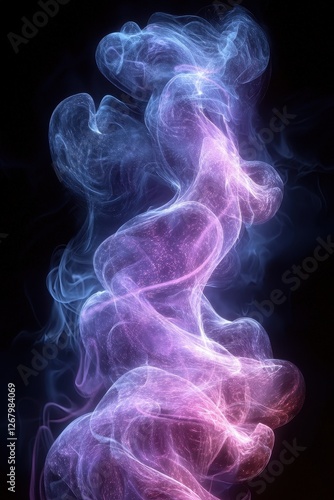 Abstract Purple and Blue Smoke Swirls on Black Background
