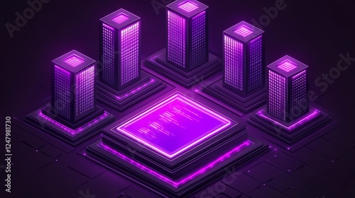 Abstract Purple Cityscape Digital Architecture Futuristic Technology Network