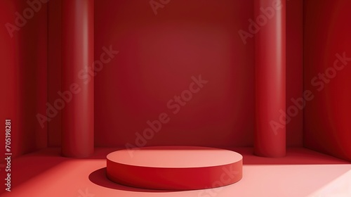 abstract red background with empty stage Cylinder podium display, showcase for product presentation