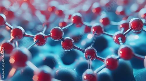 Abstract red molecular structure science background technology image 3d art blue bond atoms design