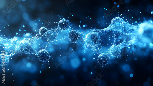 Abstract representation of molecular structures in blue tones.