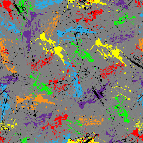 abstract seamless pattern with multicolored traces of paint, scuffs