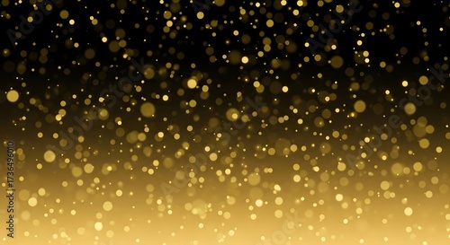 Abstract shimmering golden particles falling like snow against a dark gradient background