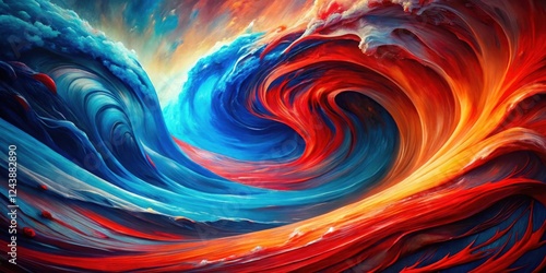 Abstract Swirling Ocean Waves of Vivid Red and Blue Hues