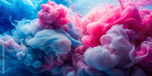 Abstract swirling pink and blue ink clouds creating a liquid color abstract background