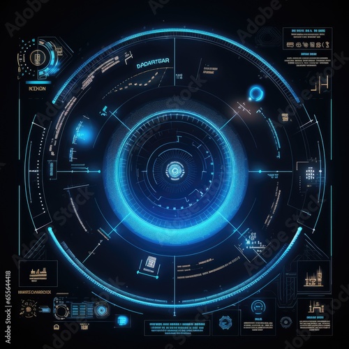 Abstract technology hud interface hologram elements neon lights, circle percent vitality innovation on hi tech future design. Generative AI