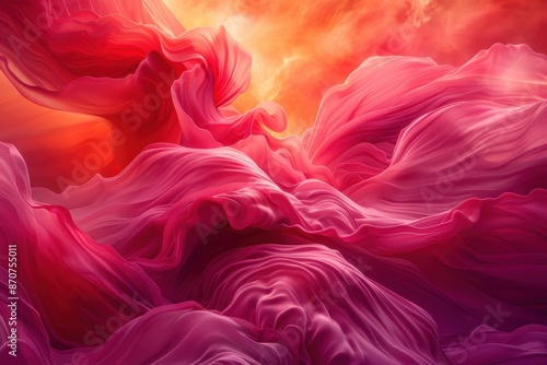 Abstract vibrant pink and orange swirling patterns resembling fabric in dynamic motion, creating a mesmerizing and colorful visual effect.