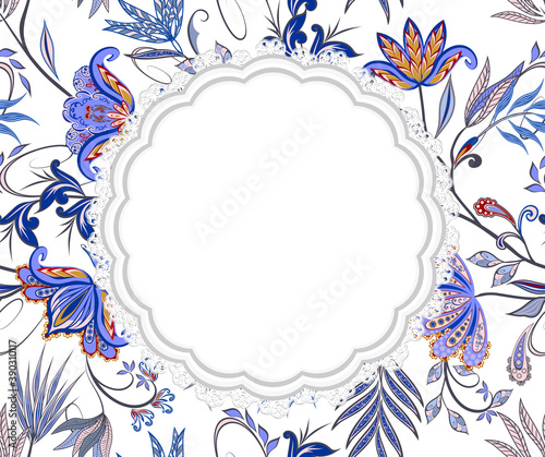 Abstract vintage pattern with decorative flowers, leaves and Paisley pattern in Oriental style.