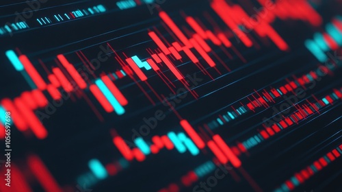Abstract visualization of data trends with red and blue lines representing fluctuations and patterns in information flow.