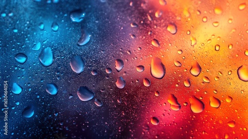 Abstract Water Droplets on Glass with Vibrant Blue and Orange Backlight