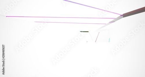 Abstract white and colored gradient glasses interior multilevel public space with window. 3D illustration and rendering.