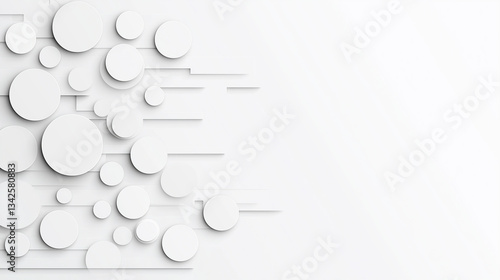 Abstract White Circles: A minimalist abstract design featuring an array of white circles, arranged in a dynamic composition with subtle shadows, creating a sense of depth and dimension.