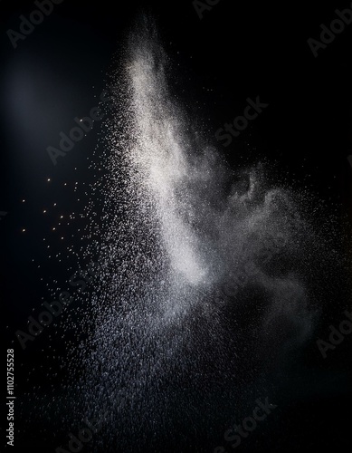Abstract white powder explosion on black background.