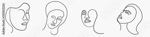 Abstract woman face continuous freehand drawing.