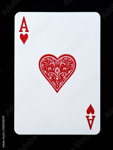 Ace of Hearts Playing Card. Isolated on Black with a Bold Frontal Design for Gamblers and Card Enthusiasts