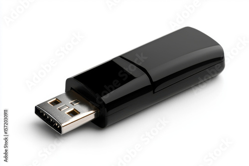 Action-packed black usb flash drive isolated on white background high-resolution image studio environment close-up view technology concept